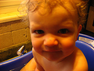 My attempts to photograph the new haircut failed, so I present his curls in the tub, pre-haircut, for your dose of cute.